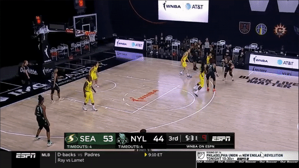 The 2019 first-round pick finally stepped onto the court for the Storm and played well off the bench, scoring seven points and collecting three rebounds. The 6’4″ center held her own, too, when the Libery ran her through the pick and roll to force her onto smaller guards. The stop on Ionescu in the third quarter to force a shot-clock violation was a perfect example.