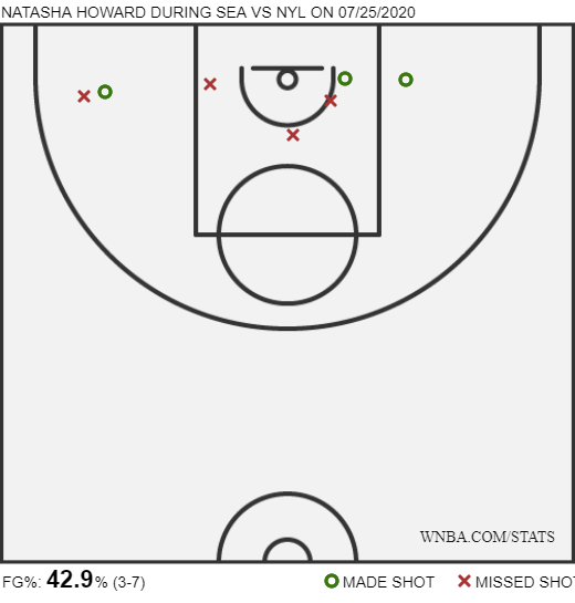 Howard finished with six points, seven rebounds, two steals and one block. Not only did the reigning Defensive Player of the Year fail to attempt a three-pointer, only one of her three field goals came in the paint.